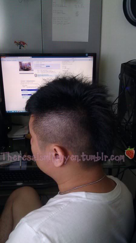 It looks blue greyish right? I wasn't lying...any who, here is a how his hair looked before I played Dr.Evil on his hair.